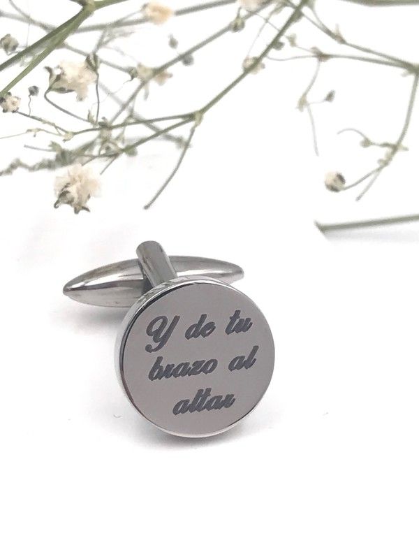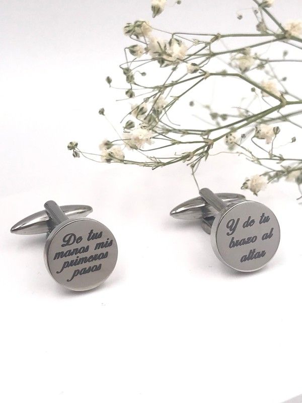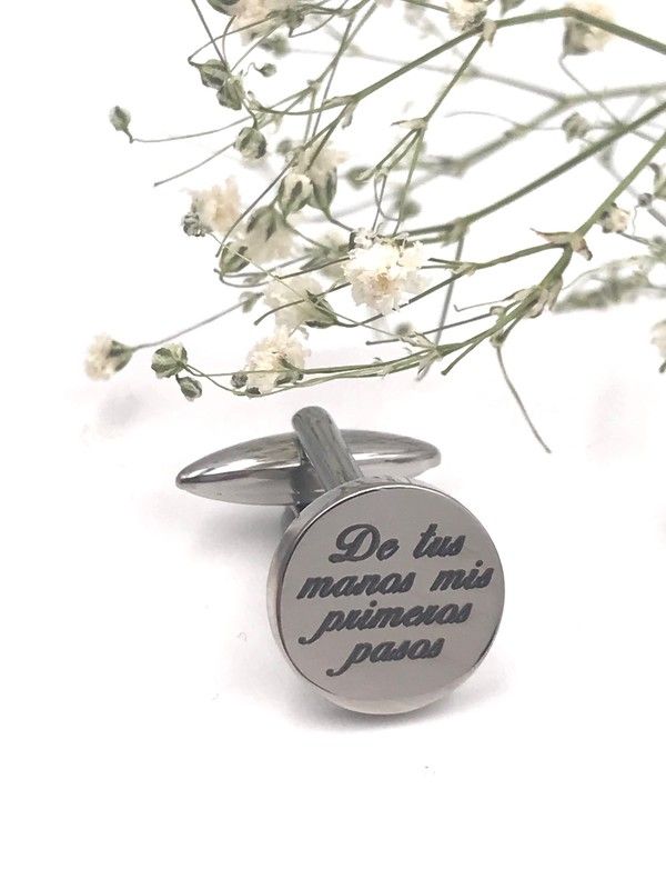 Boutons de manchette en acier avec possibilité de gravure. Ajoutez votre gravure personnalisée en commentaire ou contactez-nous.