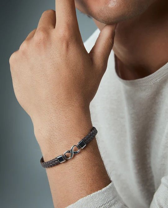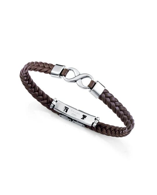 Bracelet Viceroy en acier inoxydable, avec un bracelet tressé marron et un symbole de l'infini au centre. Un bracelet polyvalent et moderne, conçu pour celles et ceux qui apprécient le style et les détails subtils.