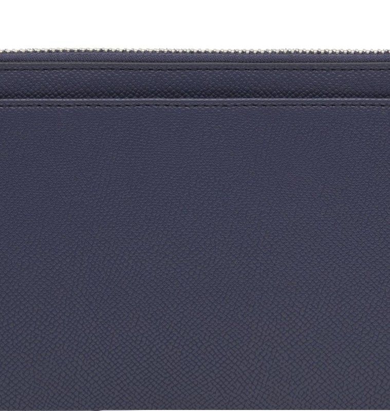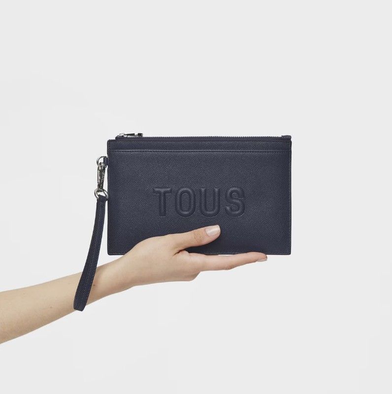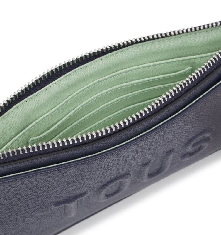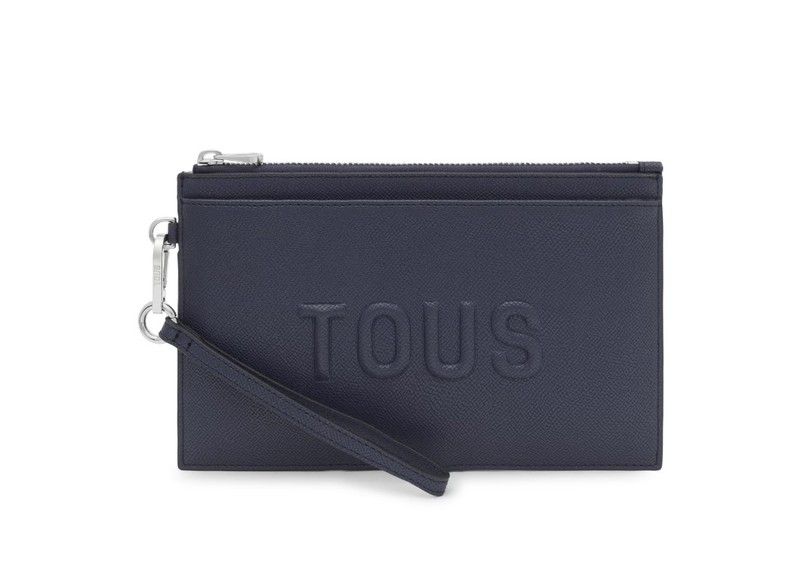 Portefeuille mobile Tous de la collection Brenda, en polyuréthane bleu marine, avec fermeture éclair et deux poches extérieures. À l'intérieur, il comprend quatre emplacements pour cartes et une poche ouverte.