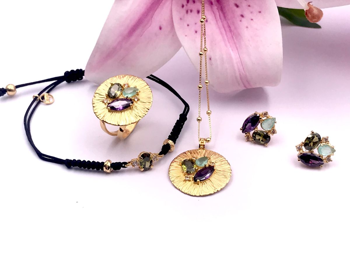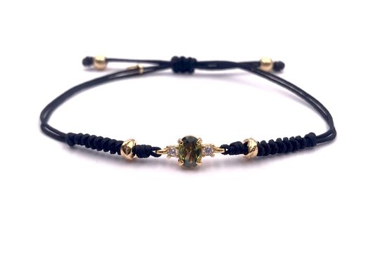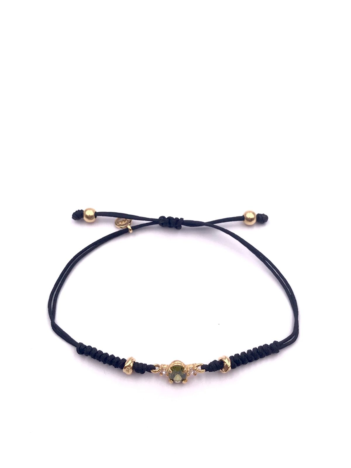 Pulsera fabricada artesanalmente en plata de ley chapado en oro, con circonita color verde olivina como central y dos pequeñas circonitas blancas a cada lado, dando mas luz y un toque de elegancia para tu outfit.