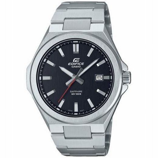 Reloj Casio Edifice, fabricado en acero inoxidable con un diseño analógico clásico de tres agujas, con esfera negra y bisel redondo, estos relojes combinan un look deportivo con una sensación de lujo. Un básico imprescindible.