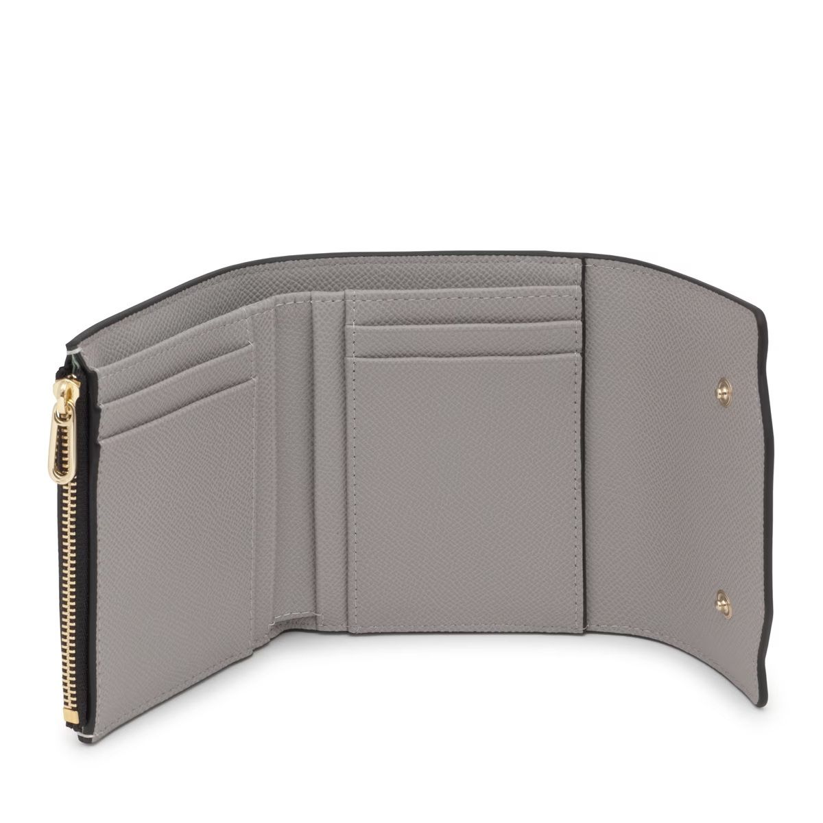 Portefeuille Tous de la collection Audree Saffiano, en polyuréthane beige et gris. Il se ferme par un rabat à pression et comprend un compartiment pour les billets, un compartiment zippé pour la monnaie et plusieurs emplacements pour cartes.