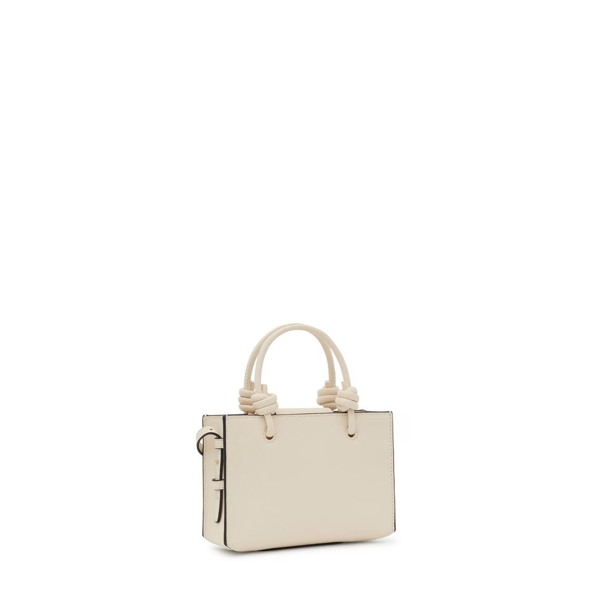 Le mini sac Tous de la collection La Rue New, en polyuréthane beige, se ferme par un bouton-pression aimanté. Il est doté d'une bandoulière fixe et d'une bandoulière bandoulière ajustable et amovible. Emportez l'élégance partout avec vous grâce à ce mini sac polyvalent, idéal en toute occasion.