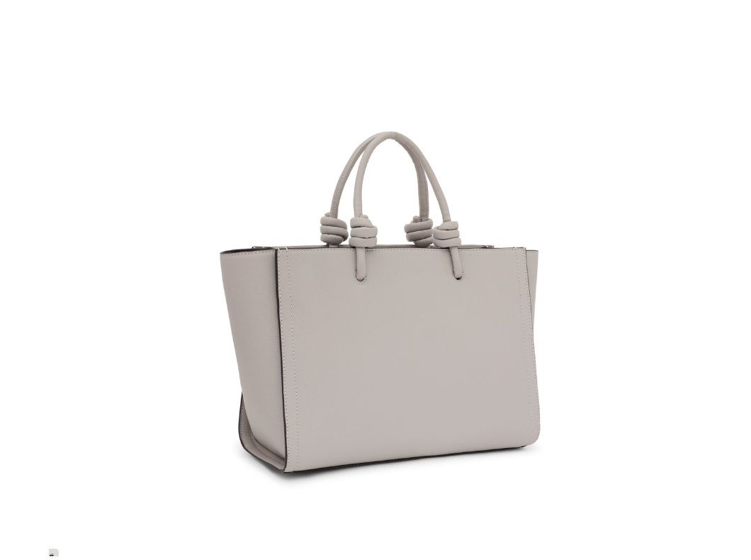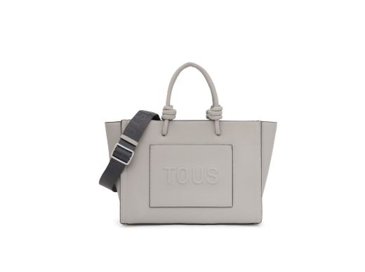Sac cabas Tous de taille moyenne, de la nouvelle collection Amaya La Rue, en cuir synthétique gris. Nouveauté : ce modèle est désormais doté de fermetures zippées et de poches intérieures et extérieures ouvertes. Il est doté d'une poignée nouée emblématique et d'une bandoulière amovible et réglable pour un confort optimal.
